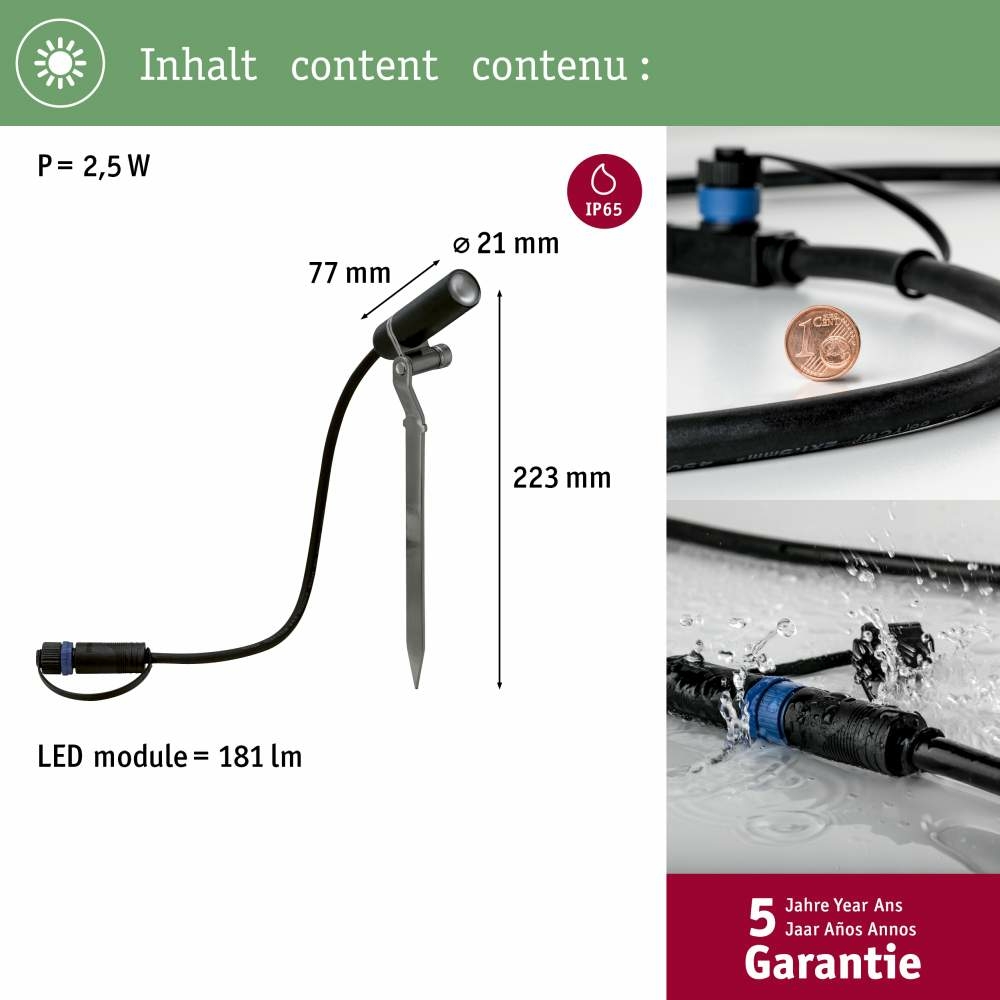 Paulmann 93997 Plug & Shine LED Gartenstrahler Plantini Einzelspot IP65 3000K Anthrazit