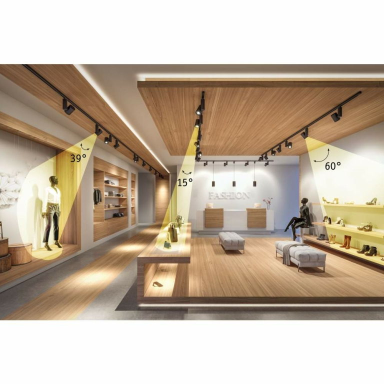 Der neutralweiße, dimmbare Spot Zeuz in der Farbe Schwarz mit einer Präzisionslinse hat einen Ausstrahlwinkel von 15°. Mit ihm lässt sich das Licht dorthin bringen, wo es benötigen wird. Der 33 Watt starke Spot ist vielseitige einsetzbar und setzt gekonnt jeden Anwendungsbereich in Szene. Das vielseitige ProRail3 Schienensystem bietet eine flexible und individuelle Beleuchtung für z. B. Verkaufsräume, Arztpraxen oder Gastronomien. Mit nur einem Stromauslass lassen sich auch verwinkelte Räume lichtstark ausleuchten. Die Beleuchtung mit dem ProRail3 Schienensystem, lässt sich über das Lichtplanungsprogramm DIALux planen und realisieren.