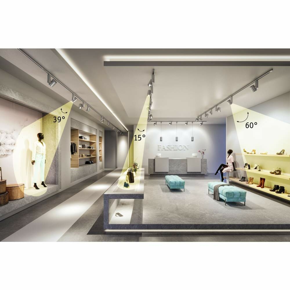 Der neutralweiße, dimmbare Spot Zeuz in der Farbe Silber mit einer Präzisionslinse hat einen Ausstrahlwinkel von 40°. Mit ihm lässt sich das Licht dorthin bringen, wo es benötigen wird. Der 33 Watt starke Spot ist vielseitige einsetzbar und setzt gekonnt jeden Anwendungsbereich in Szene. Das vielseitige ProRail3 Schienensystem bietet eine flexible und individuelle Beleuchtung für z. B. Verkaufsräume, Arztpraxen oder Gastronomien. Mit nur einem Stromauslass lassen sich auch verwinkelte Räume lichtstark ausleuchten. Die Beleuchtung mit dem ProRail3 Schienensystem, lässt sich über das Lichtplanungsprogramm DIALux planen und realisieren.