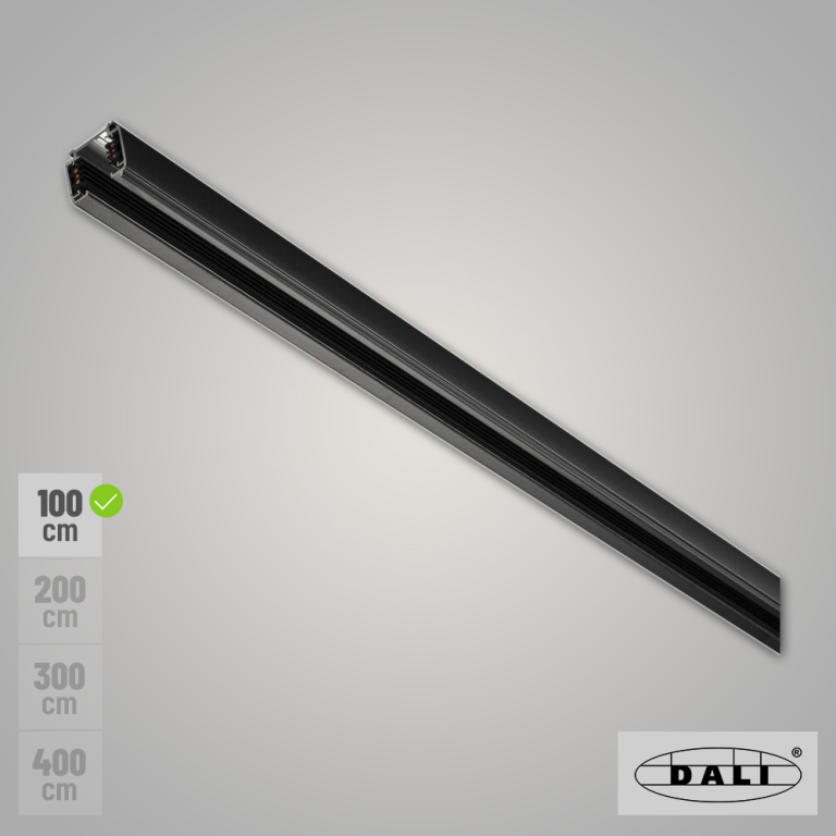 Das SLV 3-Phasen DALI System wird von der S-TRACK DALI Schiene in schwarz mit einer Länge von 100 cm vervollständigt.