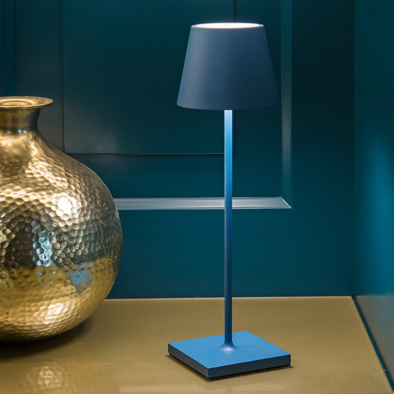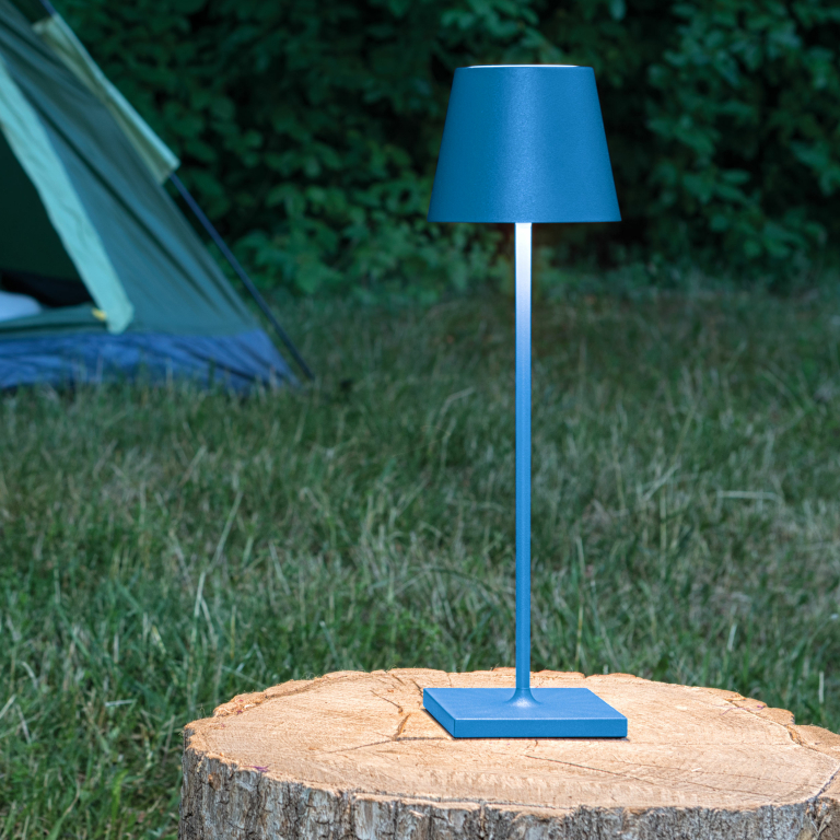 SIGOR NUINDIE - DIMMBARE LED AKKU-TISCHLAMPE INDOOR & OUTDOOR, HÖHE 38 CM, AUFLADBAR MIT EASY-CONNECT, 24 H LEUCHTDAUER, Delfinblau