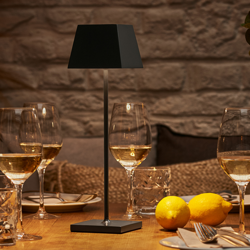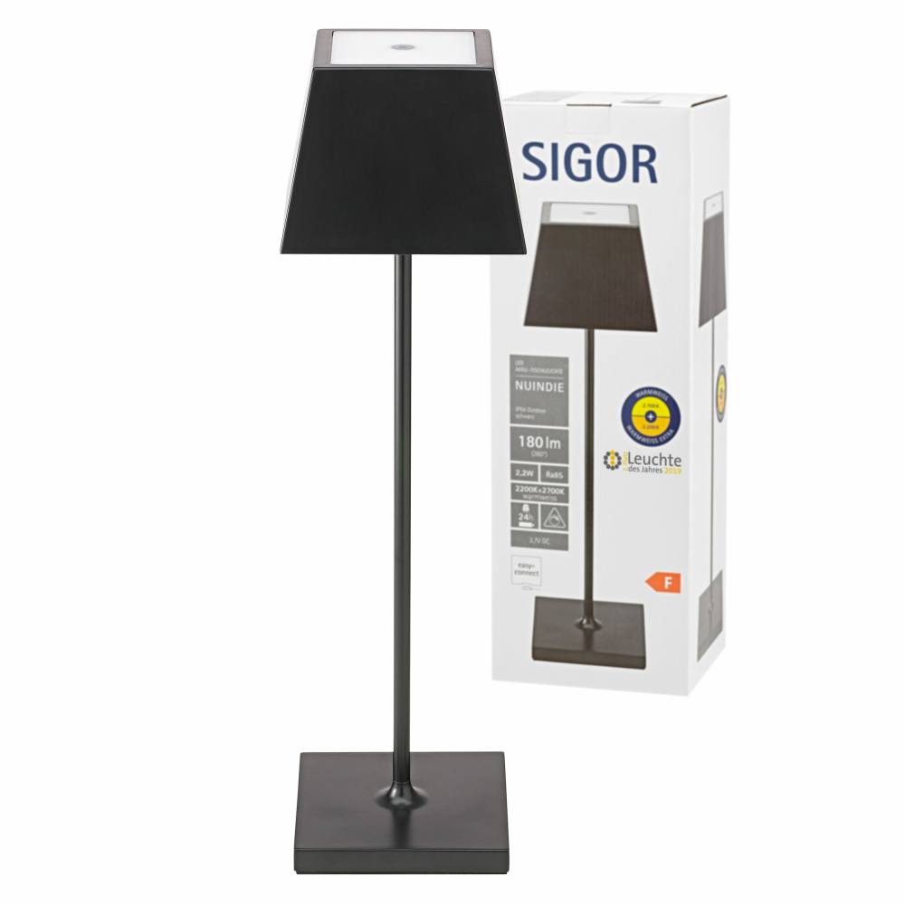 SIGOR NUINDIE - DIMMBARE LED AKKU-TISCHLAMPE INDOOR & OUTDOOR MIT ECKIGEM SCHIRM, HÖHE 37 CM, AUFLADBAR MIT EASY-CONNECT, 24 H LEUCHTDAUER, Nachtschwarz