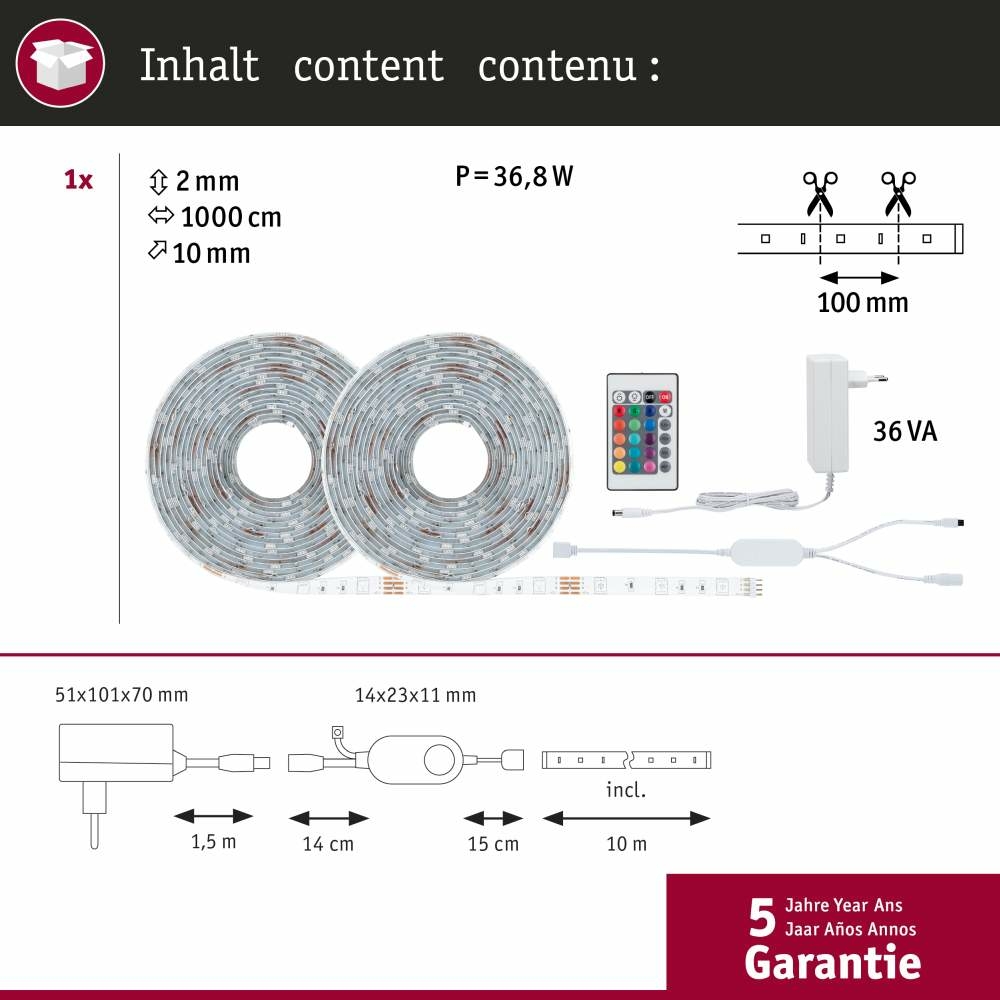 Paulmann 70535 SimpLED LED Strip Smart Home Zigbee RGB Komplettset 10m 26W 900lm 30LEDs/m 36VA