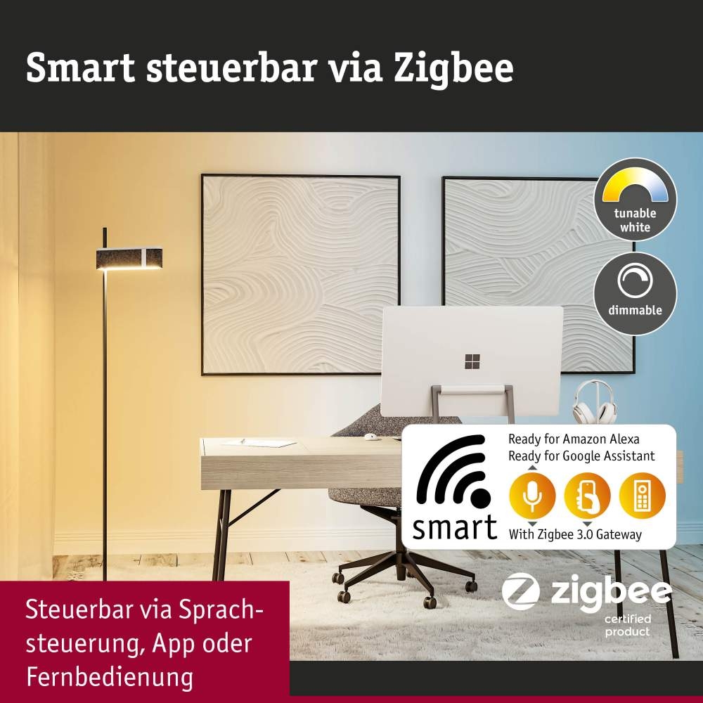 Paulmann 79993 Smarte LED Stehleuchte Jagun aus Filz in Anthrazit 1250lm Smart Home Zigbee Tunable-White-Steuerung dimmbar 230V