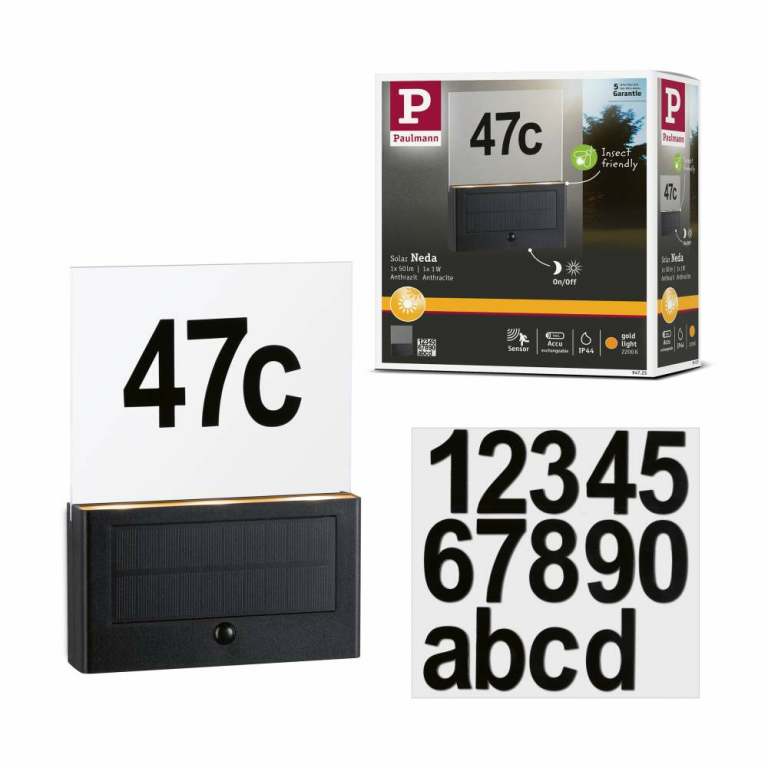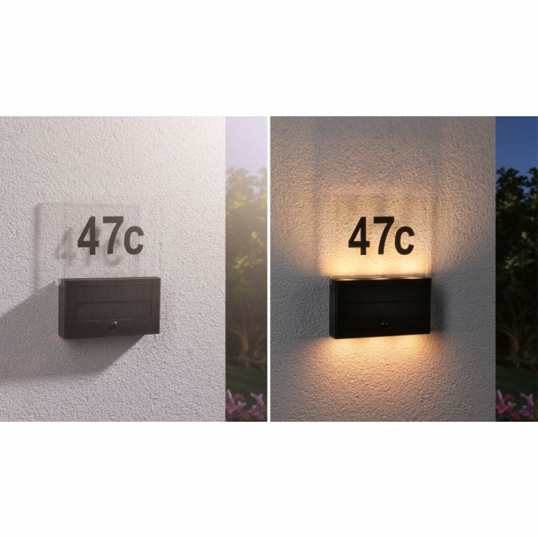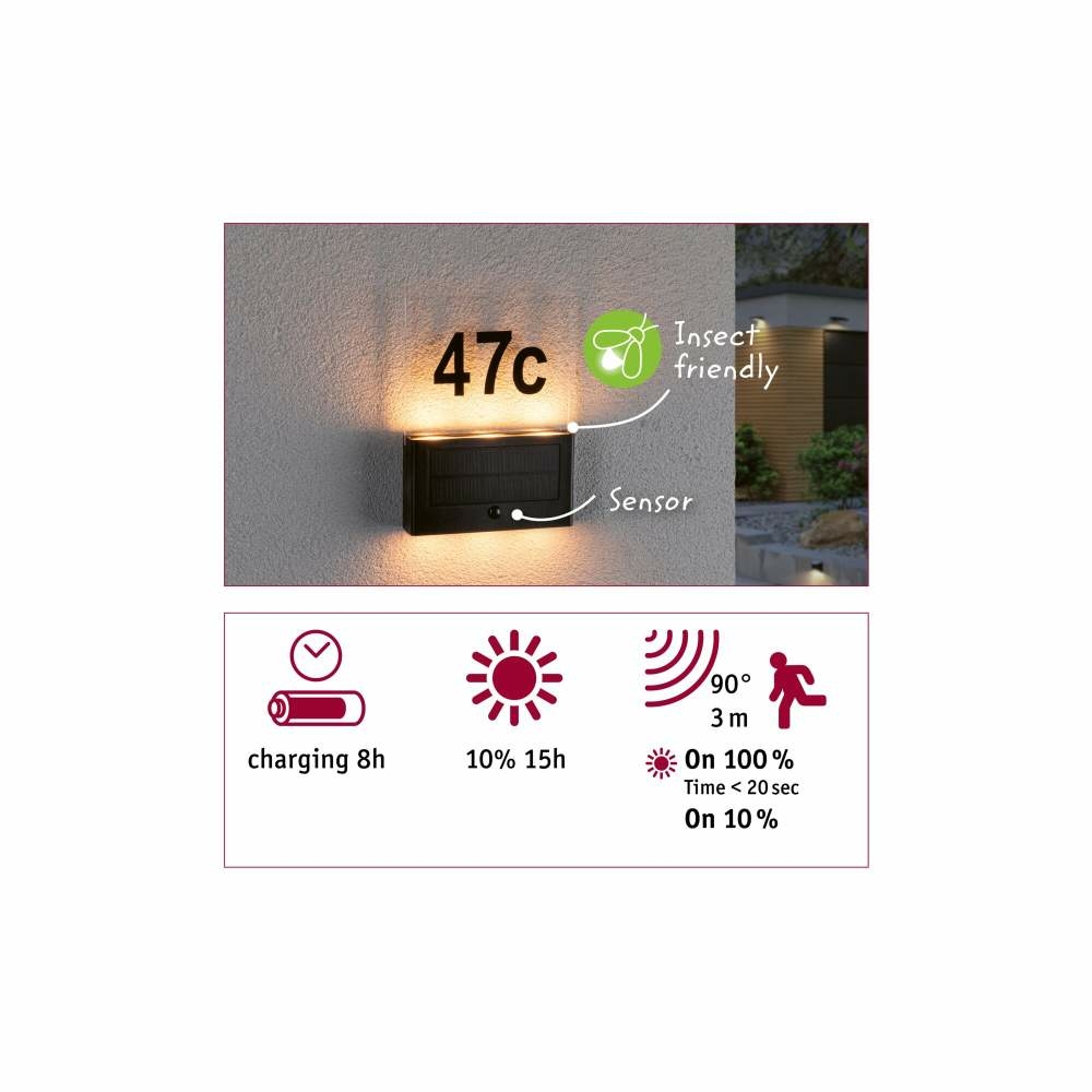 Paulmann 94725 Solar LED Hausnummernleuchte Neda Bewegungsmelder IP44 2200K 30lm Anthrazit