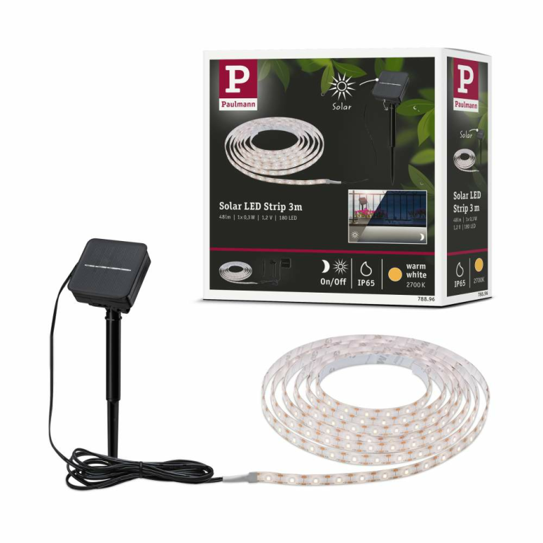 Paulmann 78896 Solar LED Stripe mit Dämmerungssensor IP44 3m 2700K warmweiß 0,3W Schwarz