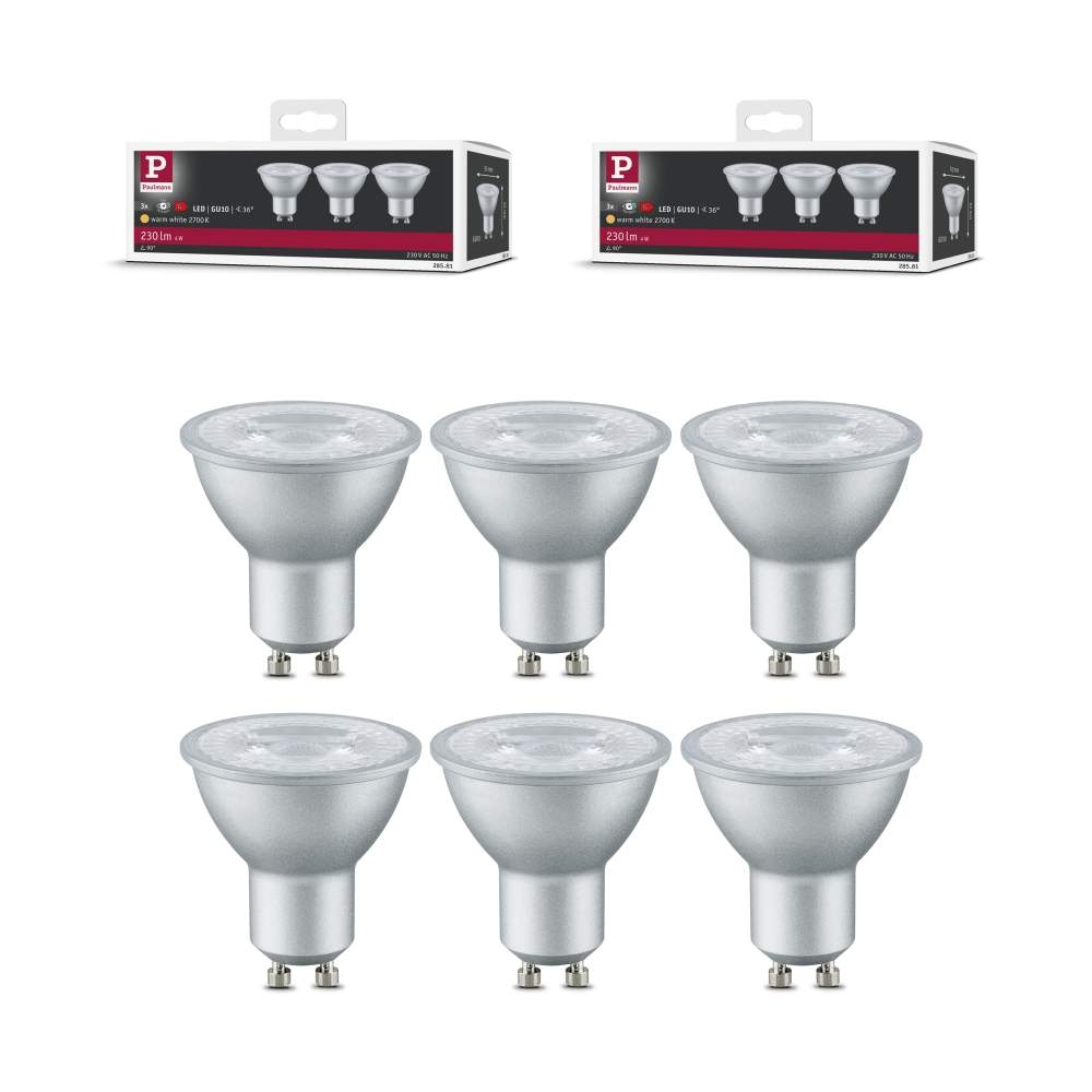 Paulmann 5328 Standard 230V LED Reflektor GU10 GU10 6er-Set GU10 51mm 2700K 6x4W 6x230lm 230V Alu