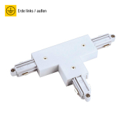 T-Verbinder mit Einspeisefunktion Erde links / außen in schwarz für das Hochvolt 1Phasen-Aufbauschienen-System von SLV. Hierbei handelt es sich um eine Komponente, die neben Ihrer Aufgabe Stromschienen miteinander zu verbinden, zusätzlich die Option der Einspeisung des Stroms in das Schienensystem bietet.
