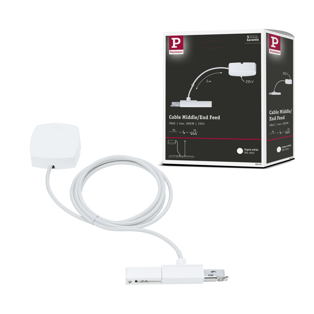 Paulmann 95645 URail Einspeisung Kabel 2m Signalweiß für Seil-Deckenabhängung
