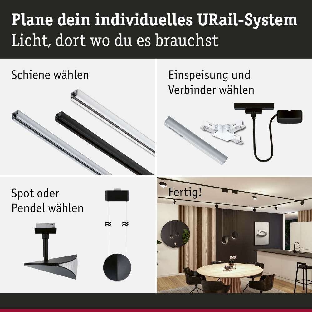 Paulmann 94967 URail LED Schienenspot Alejandro 10W 800lm 4000K 3-Step-Dim dimmbar Schwarz matt (LED fest verbaut)