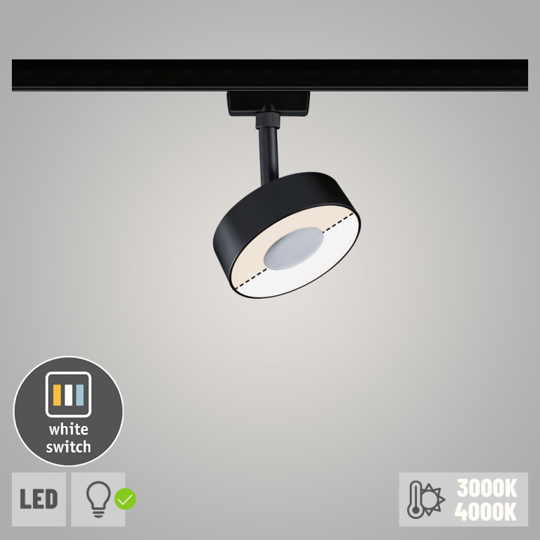 Paulmann 96545 URail LED Schienenspot Circle mit White-Switch 5W 210lm 230V schwarz matt (LED fest verbaut)