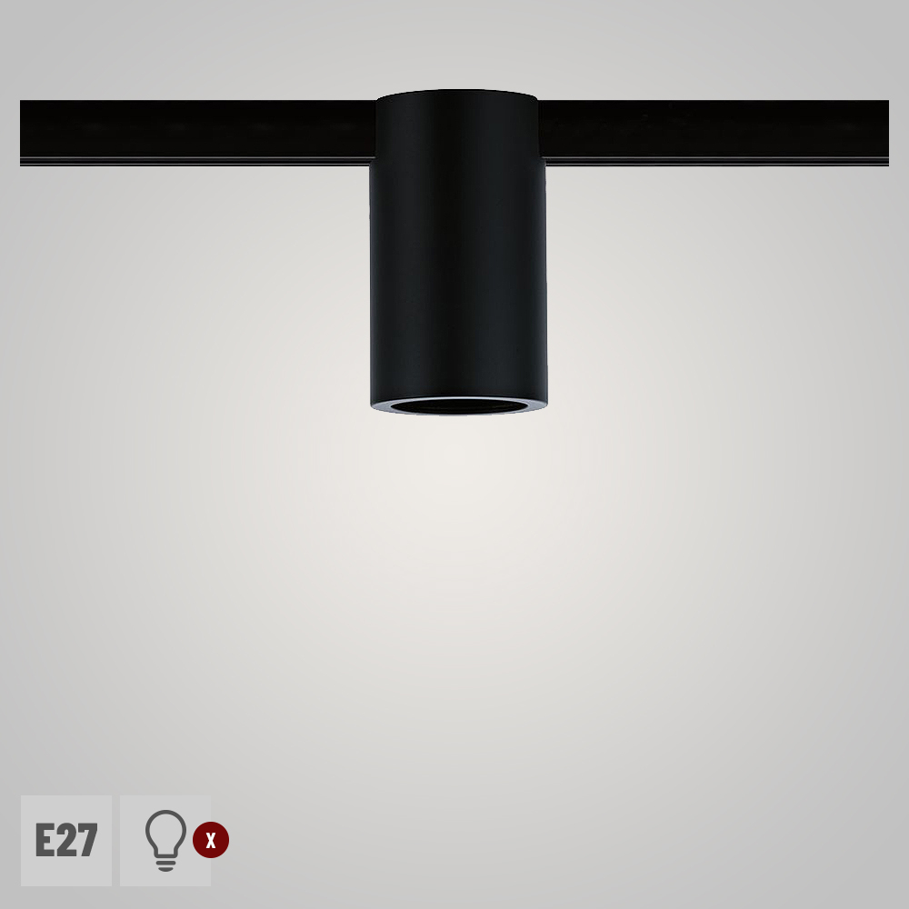 Der URail Spot Ceiling Socket in der Farbe Schwarz eignet sich speziell für die Kombination mit dekorativen Leuchtmitteln wie Kopfspiegellampen und Filamentlampen. Die innenliegende E27-Fassung und die Schienenaufnahme verschwinden unsichtbar hinter einer Metallabdeckung.