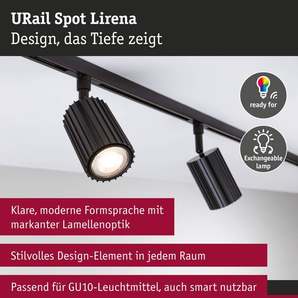Paulmann 93148 URail Schienenspot Lirena GU10 max. 10W 230V Schwarz matt