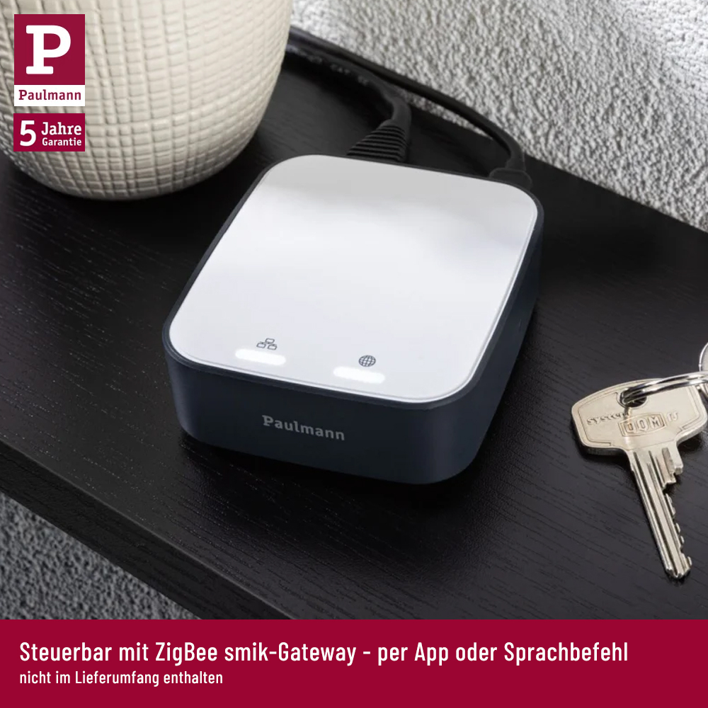 - Nutzbar mit Smart Home Gateways, die über eine Zigbee Schnittstelle verfügen, z.B. Paulmann smik Gateway