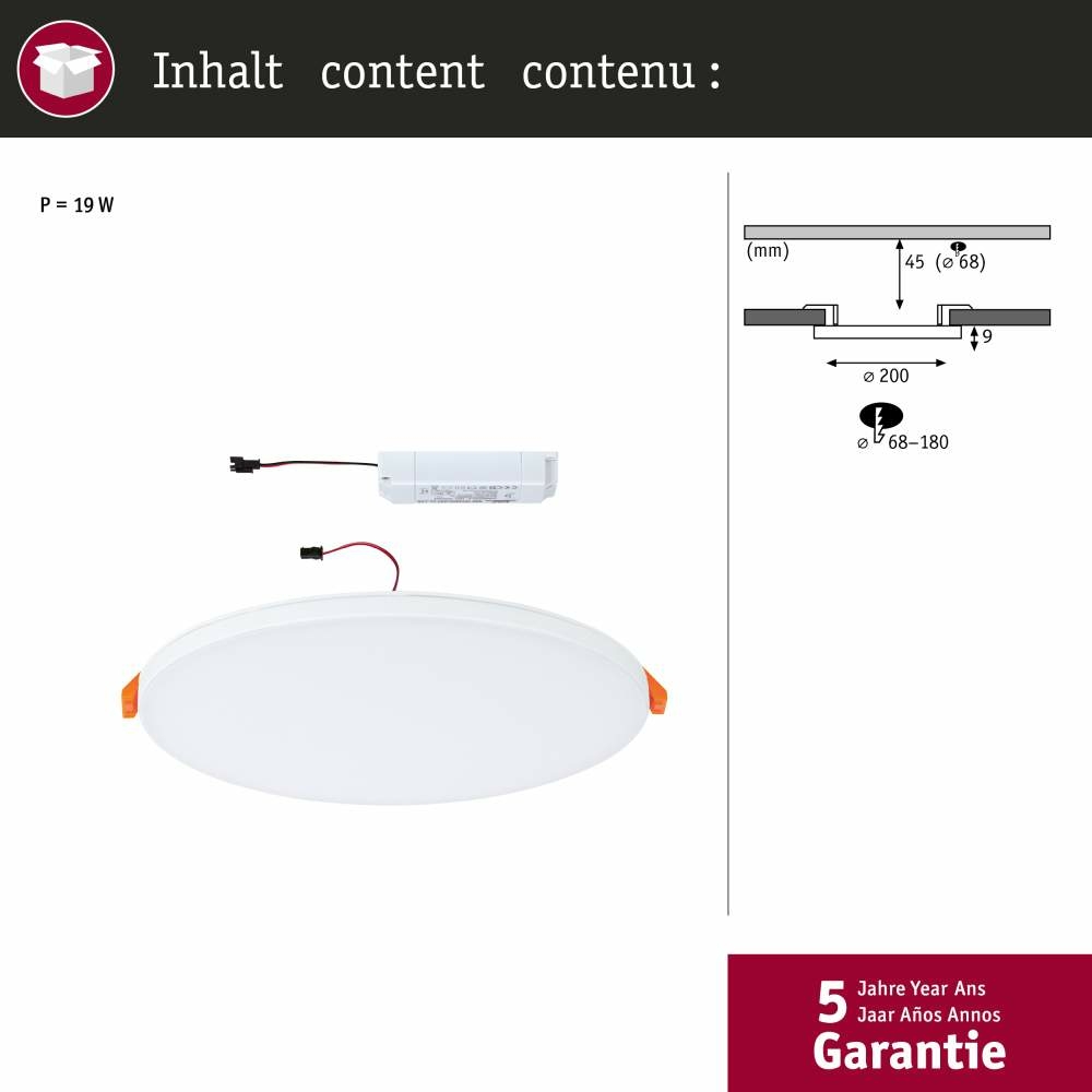Paulmann 79946 VariFit LED Einbaupanel Veluna Edge IP44 rund 200mm 1500lm 3000K Weiß dimmbar