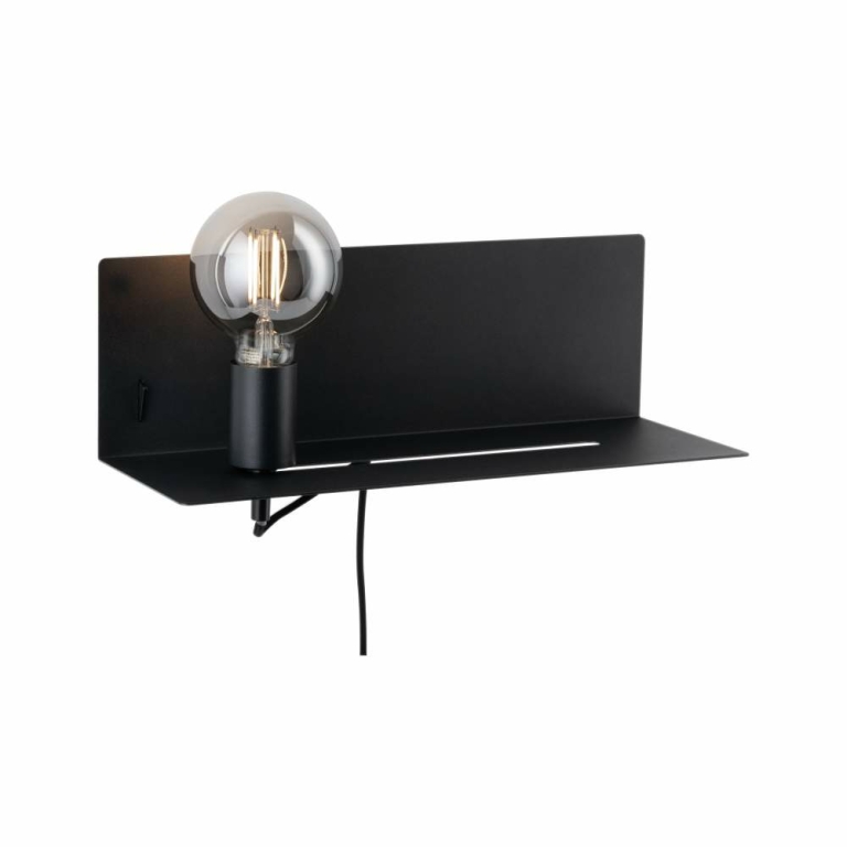 Die schwarze Wandlampe Devara ist durch die integrierte Ablage multifunktional einsetzbar: Am Bett wird sie zur Leselampe und ersetzt den Nachttisch, im Eingangsbereich dient sie als Schlüsselablage und Flurbeleuchtung und auch in anderen Räumen wie Küche und Bad macht sie eine gute Figur. Die Montage erfolgt ganz einfach mit Stecker oder ist direkt am Stromauslass möglich. Dank USB-Ausgang lässt sich nebenbei auch das Smartphone oder Tablet darauf aufladen.