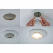 Alte Einbauleuchten gegen neue mit moderner Technik austauschen: dies gelingt ganz bequem mit dem Einbauadapter von Paulmann. Vorhandene Einbaudurchmesser von 75 bis 120mm können mit dem Adapterring auf 68 bis 70mm reduziert werden.