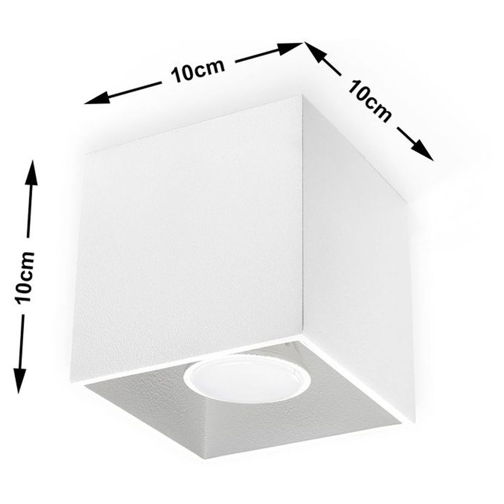 Der Deckenaufbaustrahler Alicia ist aus Aluminium hergestellt - ein sehr pflegeleichtes und langlebiges Material. Gerade Linien und Kanten zeichnen die würfelförmige Leuchte aus. Sie misst eine Höhe und Breite von jeweils 10 cm und ist in der Farbe Weiß gehalten.