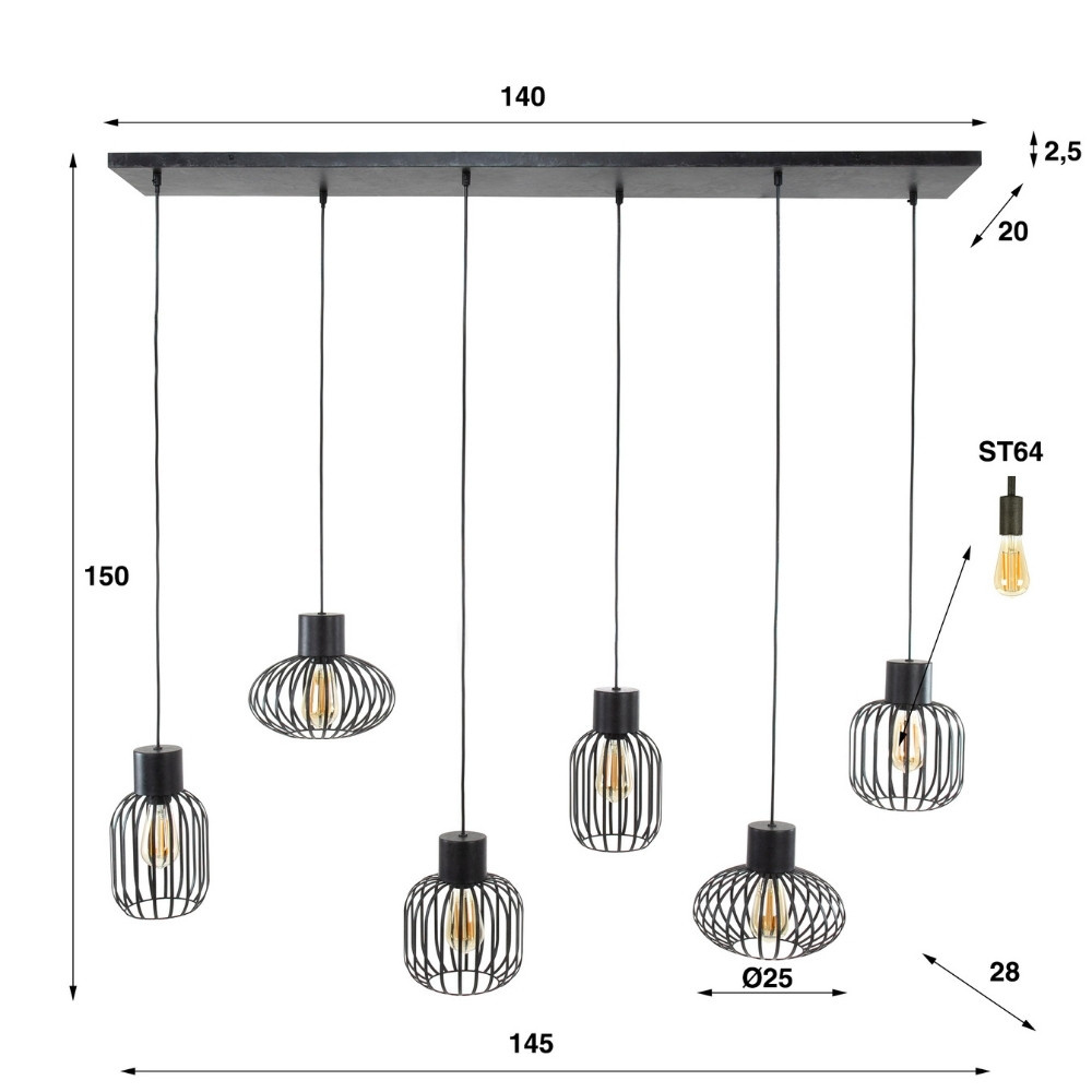famlights | Pendelleuchte Nika in Anthrazit und Altsilber E27 6-flammig