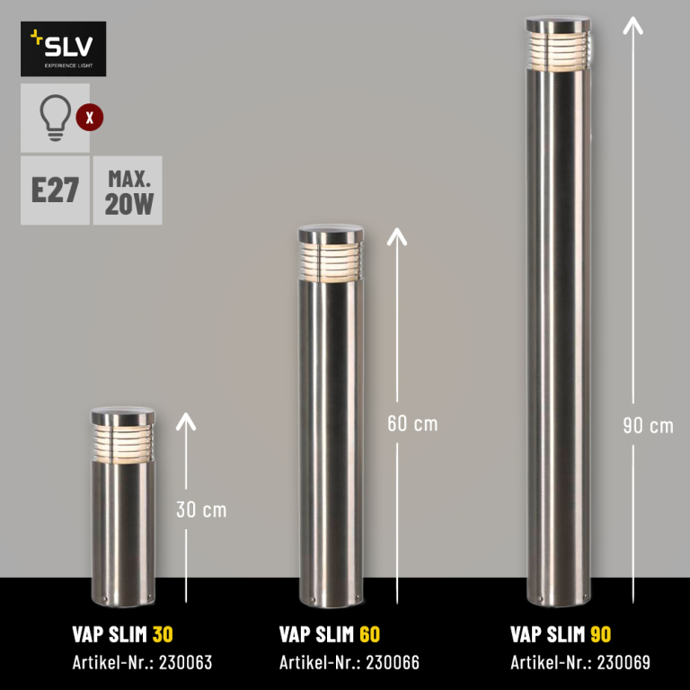 SLV 230066 VAP SLIM 60 Außen Stehleuchte rund Edelstahl 304 E27 IP44 Höhe 60cm