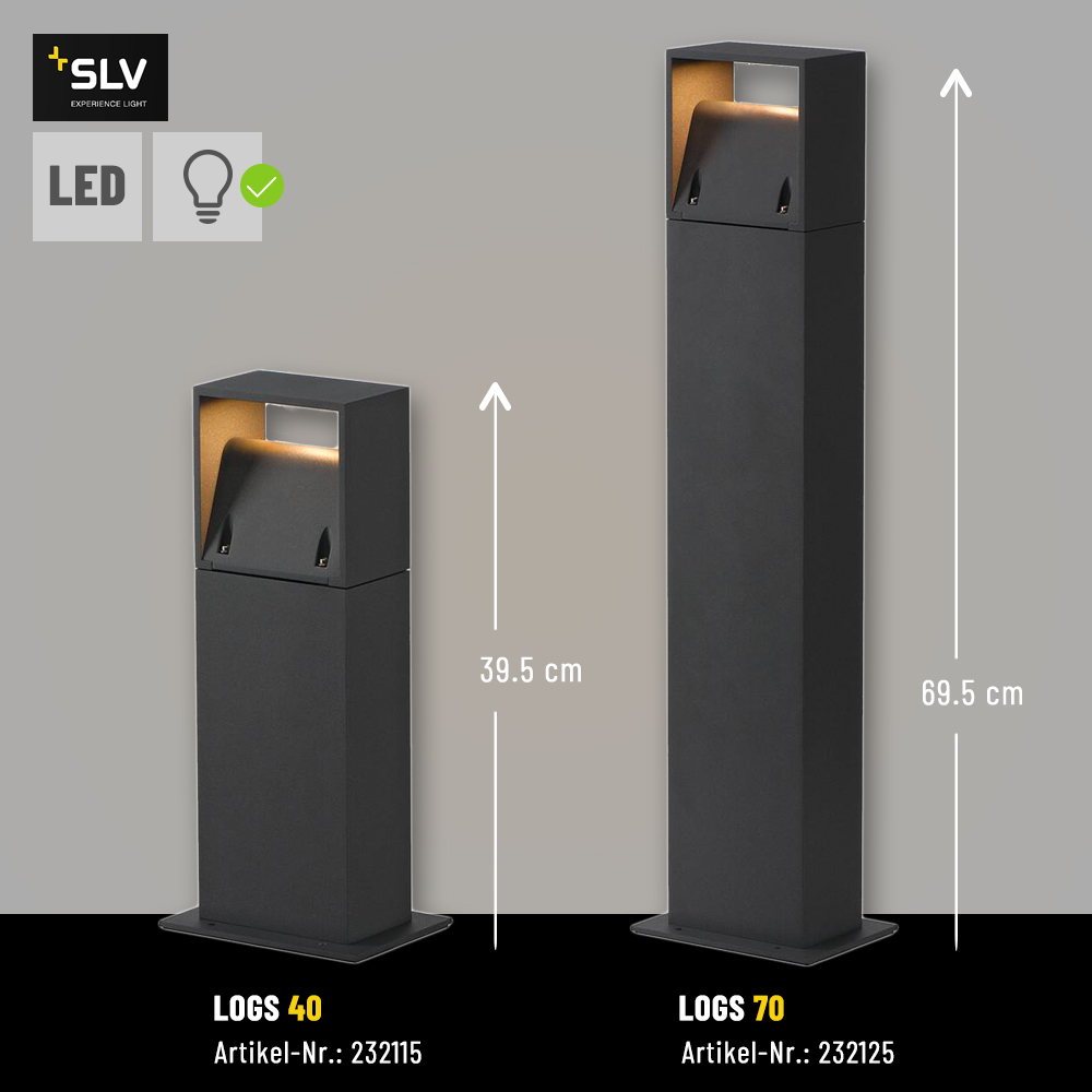 SLV 232115 Outdoor LED Standleuchte LOGS 40 anthrazit IP65 9.5W 3000K 570lm IK04 230V